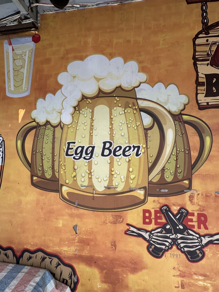 It’s lively, noisy, and wonderfully chaotic. Street musicians add to the atmosphere, and you’ll often find yourself chatting with fellow travellers at the next table. Alongside beer, there are endless food stalls and bars serving everything from grilled skewers to western snacks.
