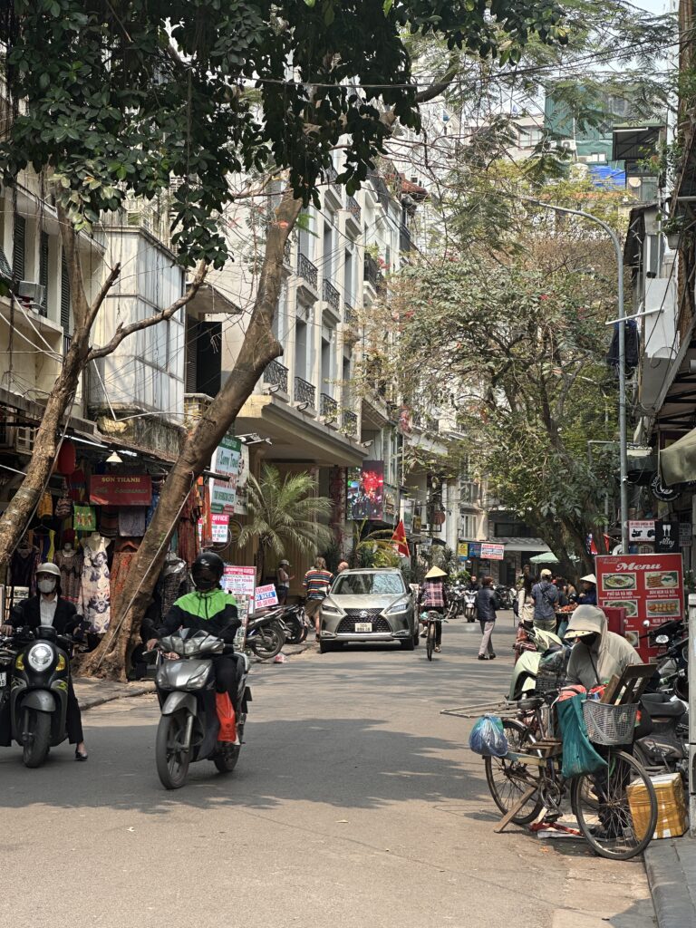 Getting around Hanoi is an adventure in itself. Walking is ideal for exploring the Old Quarter and Hoàn Kiếm Lake. The city’s traffic is famously chaotic, but once you get used to it, it’s surprisingly manageable. Crossing the street is an experience that can feel daunting at first but take my advice and do as the locals do: raise your hand and keep walking — it actually works!