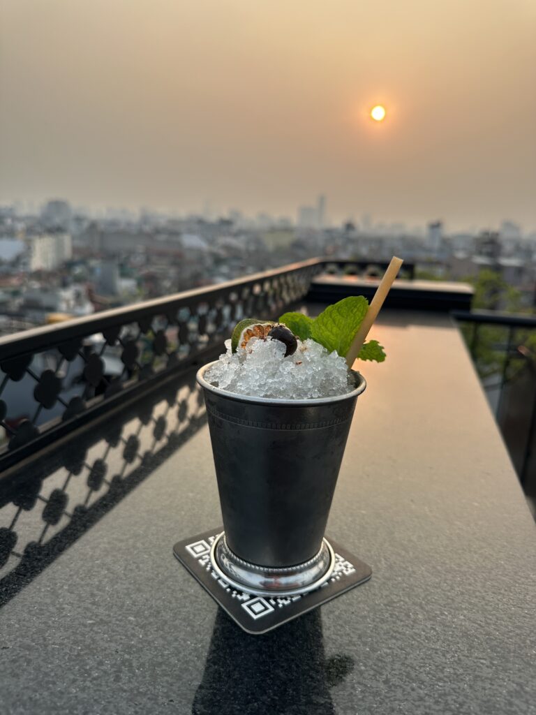 One of my favourite spots was the rooftop terrace, where panoramic views of Hanoi stretched out below. Watching the city lights twinkle while enjoying one of the hotel’s signature cocktails — the aptly named Hanoi Mule — was the perfect way to start my holiday.