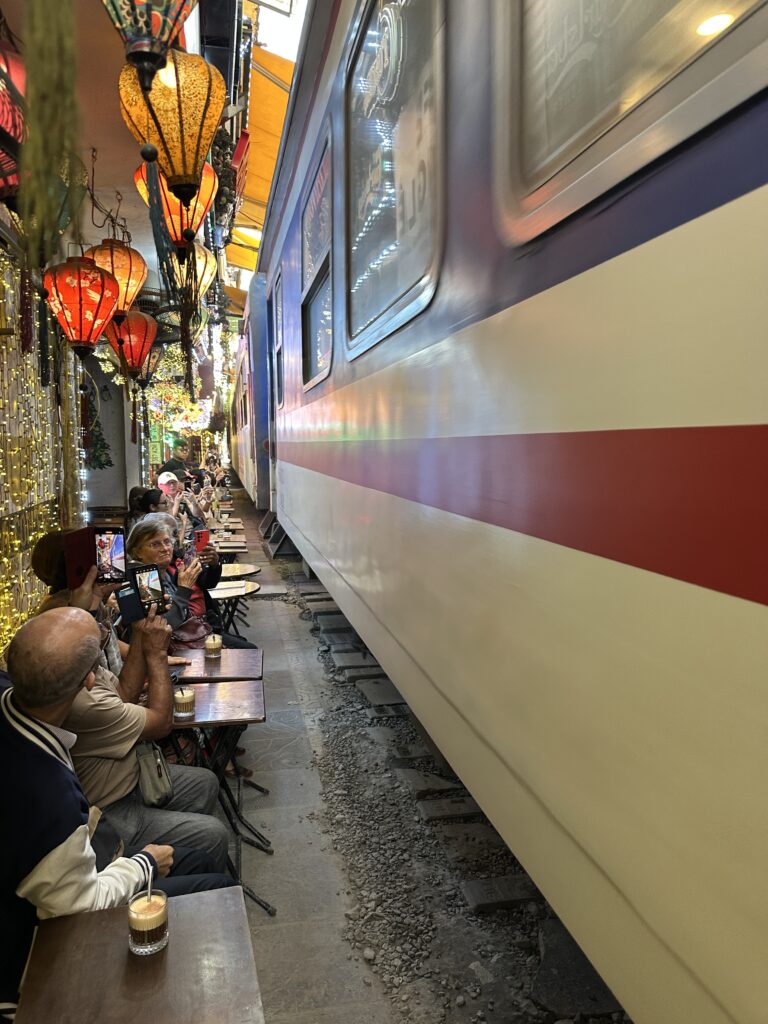 The best way to soak up the atmosphere is from one of the family-run cafés that line the tracks. Not only will they serve you a strong Vietnamese coffee, but they’ll also give you a friendly heads-up when the next train is due. And if you wander a little too close to the tracks, don’t be surprised by the piercing shriek of a police whistle reminding you to step back — safety first, thrill second!